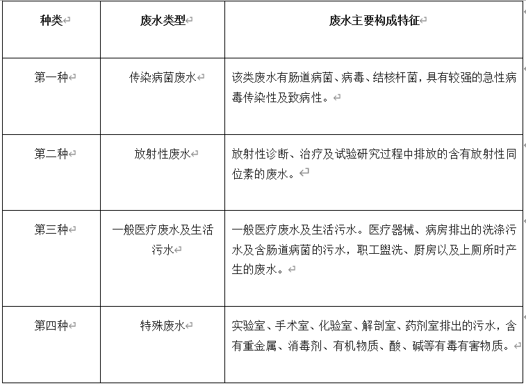 不同部门科室产生的污水成分和水量各不相同,如重金属废水、含油废水、洗印废水、放射性废水等。而且不同性质医院产生的污水也有很大不同。医疗污水较一般生活污水排放情况复杂。