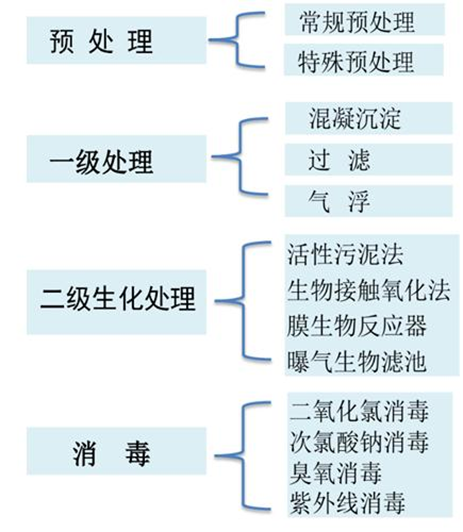 预处理+一级处理+二级处理+深度处理+消毒+出水